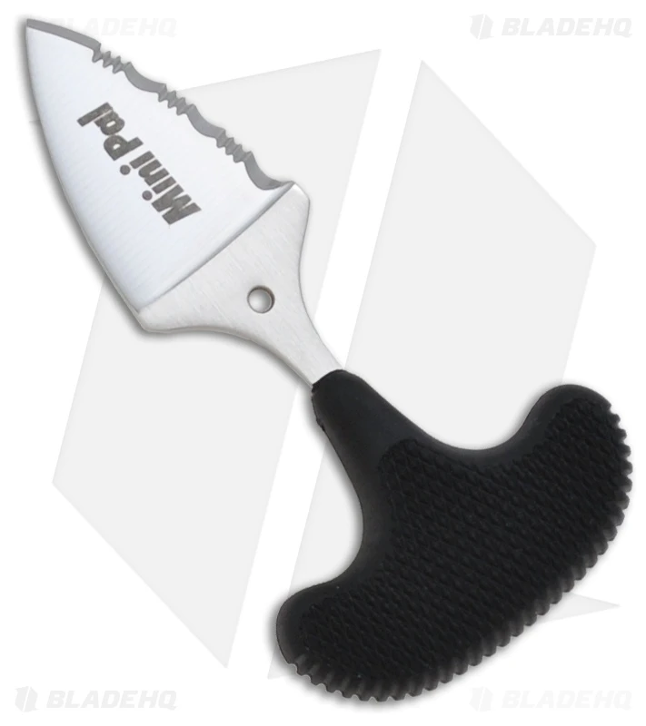 The Mini Pal is an ultralight push knife that delivers heavy weight performance. The 1″ long 400 series blade is satin finished with a razor sharp serrated edge. The textured Kraton handle offers a variety of grips that would be impossible with any other design. The Mini Pal knife comes with a Secure-Ex sheath and lanyard clip.